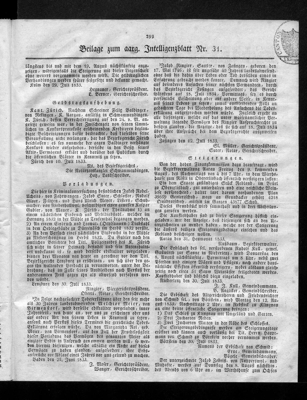 Hochobrigkeitlich privilegirtes Aargauisches Intelligenz-Blatt